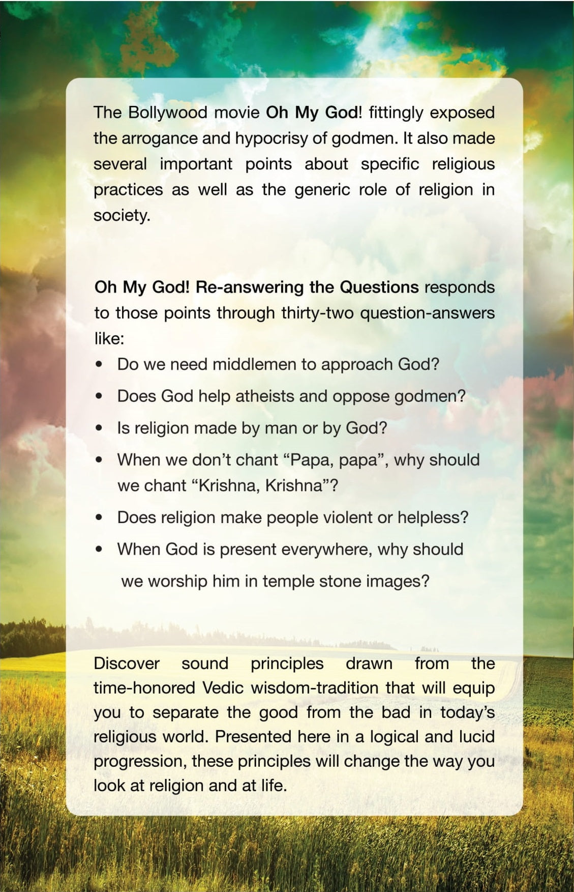 Oh My God! Re-answering the Questions thoughtfully examines common doubts about religion raised in modern discourse, addressing them through clear, logical, and insightful question–answer discussions. Drawing from Vedic wisdom, the book helps readers distinguish genuine spirituality from misunderstanding and rediscover a meaningful perspective on faith and life.